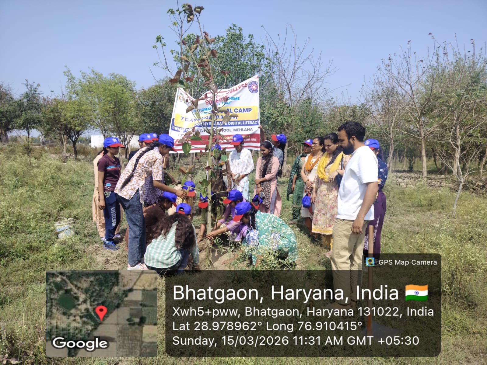 टीकाराम कन्या महाविद्यालय में एन एस एसकी यूनिट । व यूनिट 2 द्वारा Youth for My Bhart and digital Literacy विषय के तहत गाँव महलाना में लगाए जा रहें सात दिवसीय कैम्प के पाँचवे दिन स्वयंसेविकाओं ने गांव भटगाँव में ऑक्सीजन बाग में पौधारोपण व श्रम दान देते हुए सफाई अभियान चलाया । हरियाणा के Tree Man देवेन्द्र सूरा बाग की देखरेख करते हैं भटगांव की सरपंच ने स्वयंसेविकाओं को पर्यावरण को स्वच्छ रखने के लिए प्रेरित किया। इस शिविर की संयोजिका प्रोग्राम ऑफिसर डॉ. दिव्याश्री व डॉ. आशा रानी रही। इस कैम्प में 106