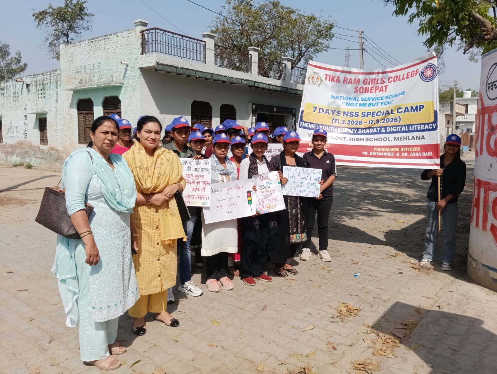 टीकाराम कन्या महाविद्यालय में दिनांक 11.03.2026 को NSS यूनिट–I एवं यूनिट–II द्वारा सात दिवसीय कैम्प का शुभारंभ गाँव महलाना में किया गया। महाविद्यालय की प्राचार्या श्रीमती गीता ने हरी झंडी दिखाकर कैम्प का उद्घाटन किया। इस अवसर पर उन्होंने छात्राओं को अनुशासन में रहने का संदेश देते हुए समाज कल्याण के कार्यों में सक्रिय रूप से भाग लेने के लिए प्रेरित किया।