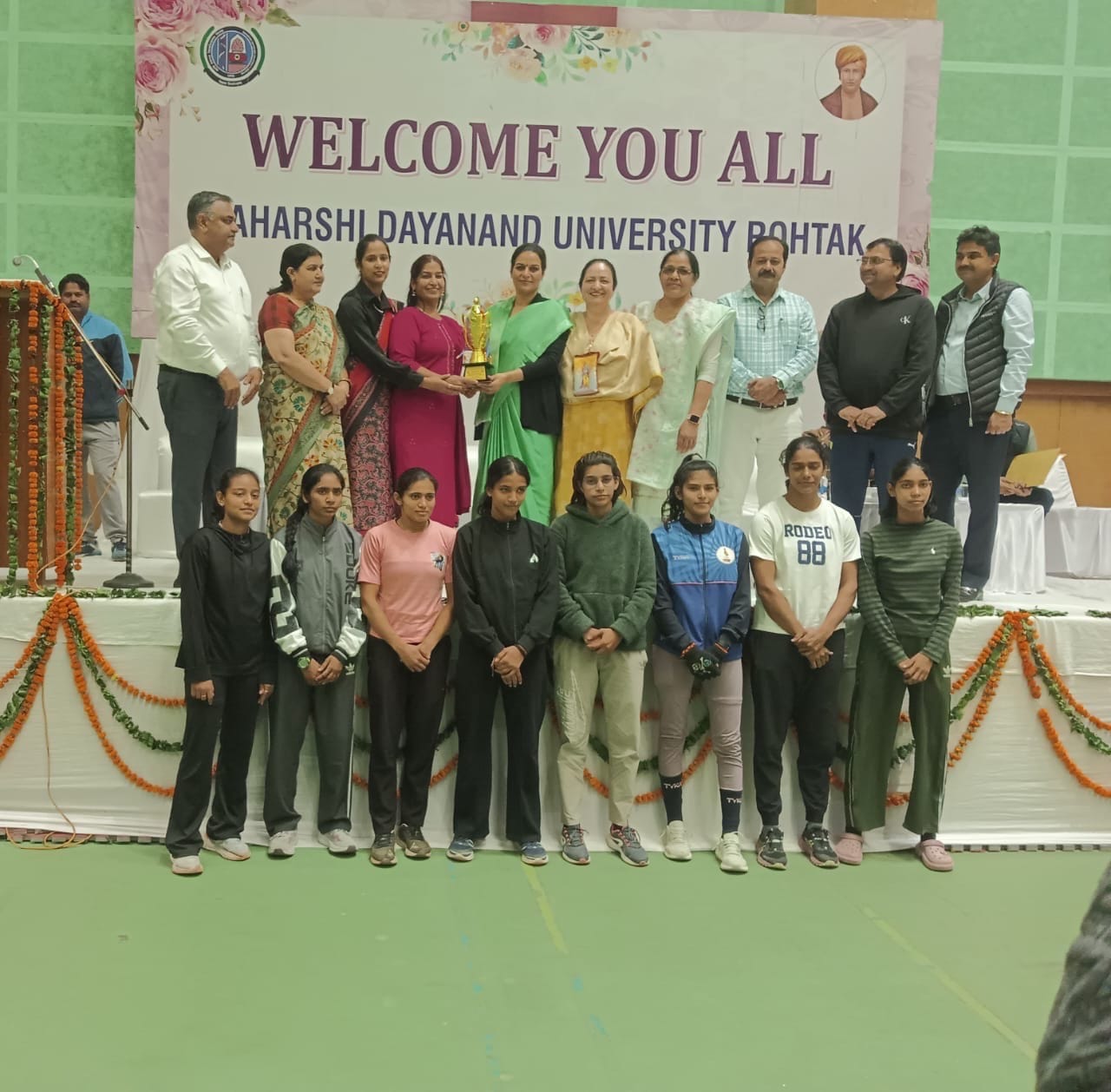 Tika Ram Girls College, Sonipat won overall 1st Runner Up general trophy in sports for the year (2022-23, 2023-24 & 2024-25) in Annual Sports Prize Distribution Function held at MDU , Rohtak in presence of Sh. Mahipal Dhanda ( Education Minister, Haryana), Dr. Rajbir Singh ( Vice Chancellor, MDU, Rohtak) ,Babita Phogat ( Arjun Awardee & olympic medalist wrestler), VC (IGU, Rewari) , VC ( Health University, Sonipat), Dr. Shakuntala Beniwal ( Sports Director , MDU). Tika Ram college won 1,53000 prize money as 1st Runner Up in All over games of AIU, North Zone and world University Games (A cheque of Rs.51000 per year). A total of 68 students got Cash Prize of Rs.10,00000 .It is a proud moment for the college to win a total of Rs.11,53000 prize money. This is the result of 3 years of dedicated preparation of our players in sports.The President of Tika Ram Education Society Sh. Surinder Singh Dahiya congratulated the players and team managers for their achievement.