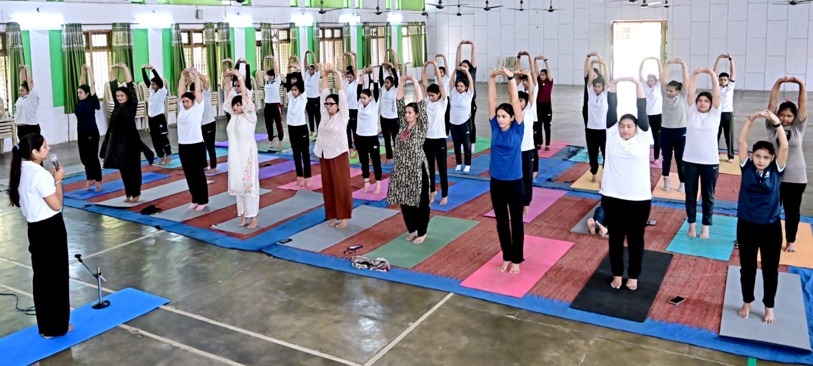 11th International yoga was celebrated in Tika Ram Girls College on 21st june 2025. Principal mam Smt Kanchan Sidhar , staff of Tika Ram Girls College along with 50 students participated in Yoga protocol of International Yoga Day which was executed by Dr. Suman Mann and Dr. Alka Dahiya . The theme of this yoga day was "One Earth One Health" and everyone took oath to follow this for their holistic well-being and health as `Pahla Sukh Nirogi Kaya`.