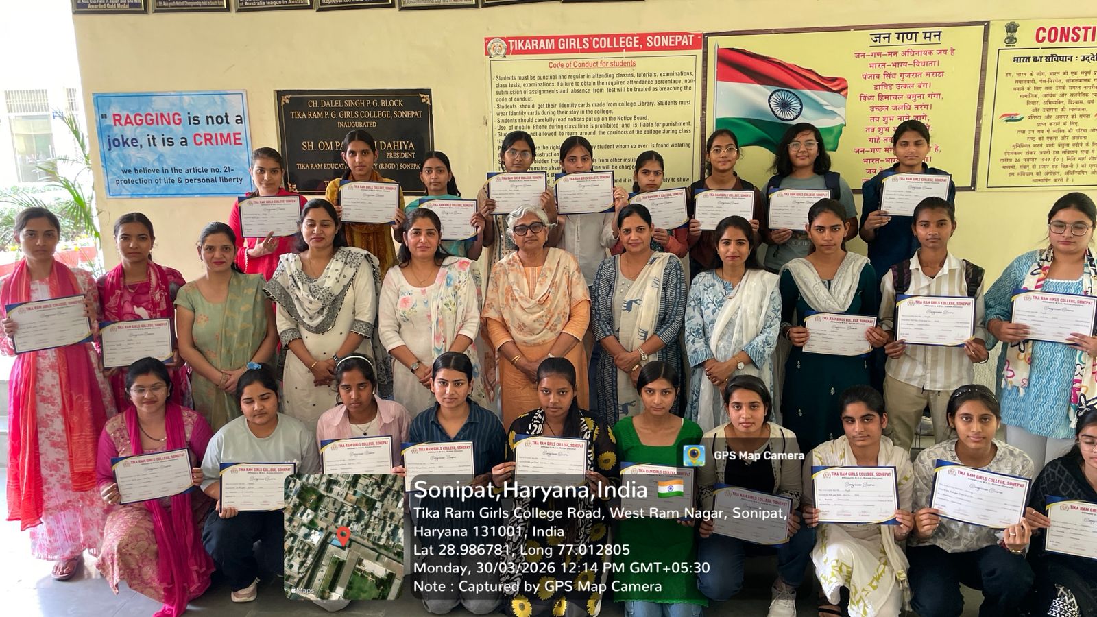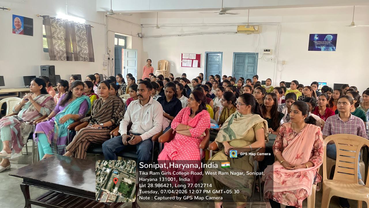 आज दिनांक 16/01/2026 को टीकाराम महाविद्यालय में विभिन्न प्रतियोगिताओं में विजित छात्राओं को सम्मानित किया गया l ITI सोनीपत द्वारा आयोजित जिला स्तर के युवा कार्यक्रमों का आयोजन किया जा रहा है जिसमें