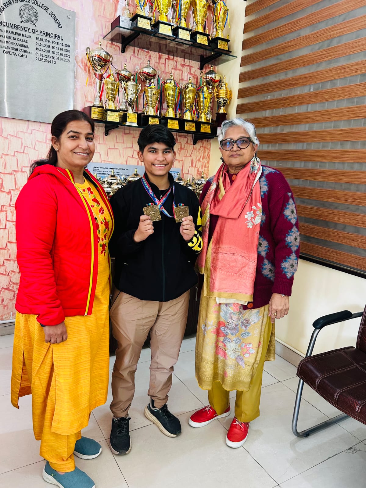 हाल ही में आयोजित 13th AITWPE सीनियर नेशनल चैंपियनशिप 2025-2026 में छात्रा ने गोल्ड मेडल हासिल कर कॉलेज का नाम रोशन किया कॉलेज पहुँचने पर श्रीमती गीता जी ने छात्रा का स्वागत कर मिठाई खिलाई | शारीरिक शिक्षा विभाग की अध्यापिका सुमन मान ने बताया कि यह टूर्नामेंट गोवा में 7-12 जनवरी तक आयोजित हुई | जिसमे बी.एस. सी. तृतीय वृष की छात्रा अंजू 55 किलो weight में 2 गोल्ड मेडल belt wrestling व nage रेसलिंग में मेडल प्राप्त कर कॉलेज का नाम रोशन किया| कुश्ती की कोच रेखा मान को जीत का श्रेय जाता है| यह सब उनकी मेहनत का फल हैं|टीका राम एजुकेशन सोसायटी के प्रधान श्री सुरेन्द्र दहिया जी ने खिलाडियों को आर्शीवाद देते हुए उज्जवल भविष्य की कामना की ।