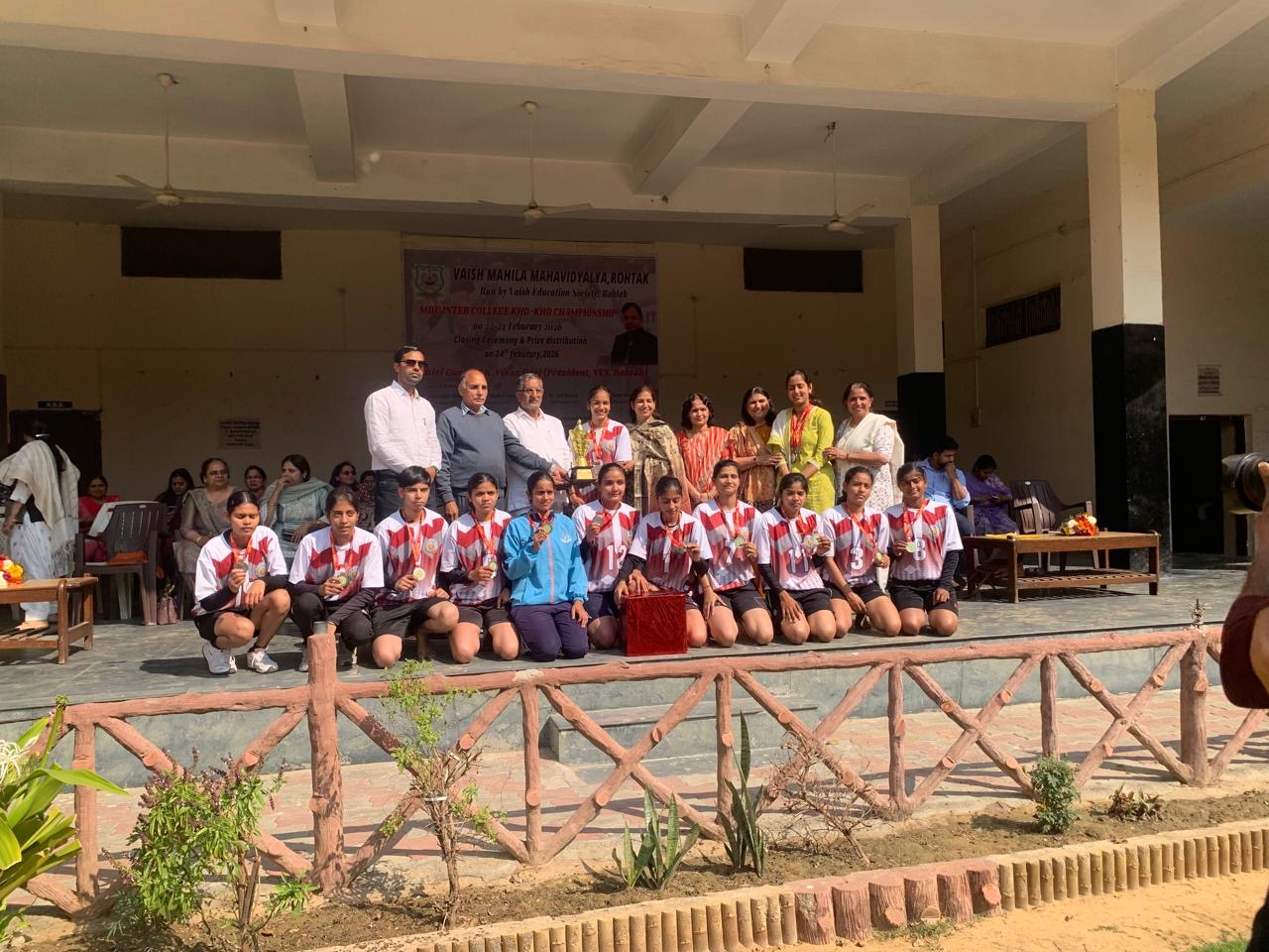 मदवि द्वारा आयोजित खो- खो इंटर कॉलेज प्रतियोगिता में टीका राम गर्ल्स कॉलेज ने दूसरा स्थान हासिल किया|कॉलेज पहुँचने पर प्राचार्य श्रीमती गीता जी ने छात्राओं का स्वागत किया|शारीरिक शिक्ष विभाग की अध्यापिका डॉ सुमन मान ने बताया की थी प्रतियोगिता 23-24फ़रवरी को VMM कॉलेज रोहतक में आयोजित की गई थी|जिसमे कॉलेज ने मोखरा कॉलेज को 10-0 से व एमकेजेके रोहतक कॉलेज को 6-3 से हराकर फ़ाइनल में प्रवेश कर VMM कॉलेज के साथ शानदार प्रदर्शन करते हुए 5-6 से दूसरा स्थान हासिल किया।टीकाराम शिक्षा समिति के प्रधान श्री सुरेंद्र सिंह दहिया जी ने भी छात्राओं को आशीर्वाद देते हुए भविष्य में और अच्छा प्रदर्सन करने की कामना की